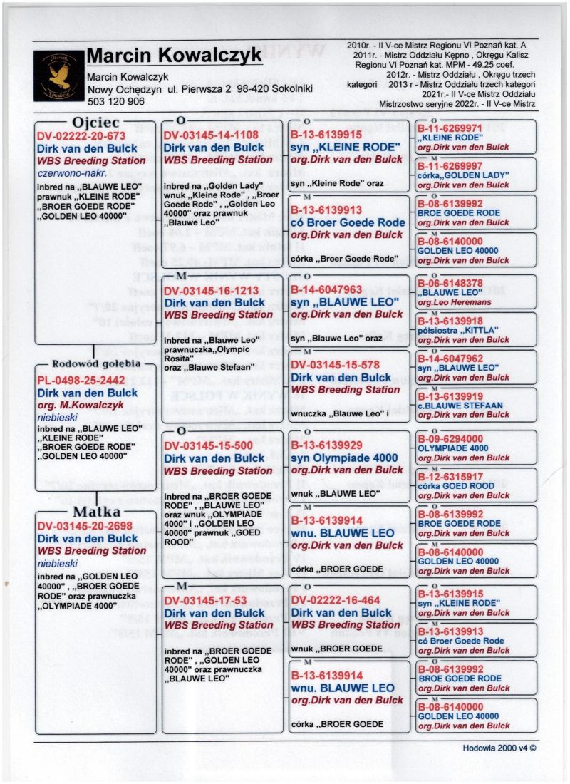 Oryginalny gołąb z hodowli Marcin Kowalczyk.# Szczegóły pochodzenia w rodowodzie. # Gołąb zaszczepiony przeciw Paramyxowirozie, Herpeswirus, Adenowirus , Ospa. # Więcej informacji pod nr tel. 503 120 906 # Możliwy transport