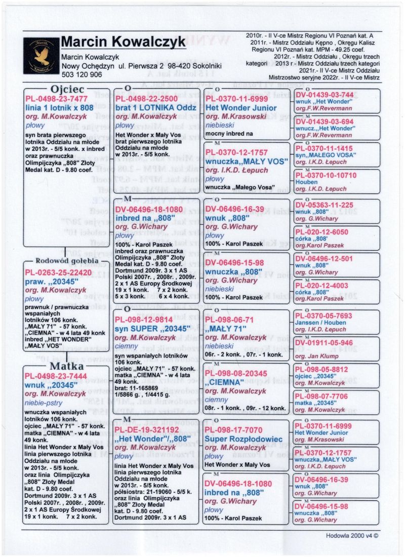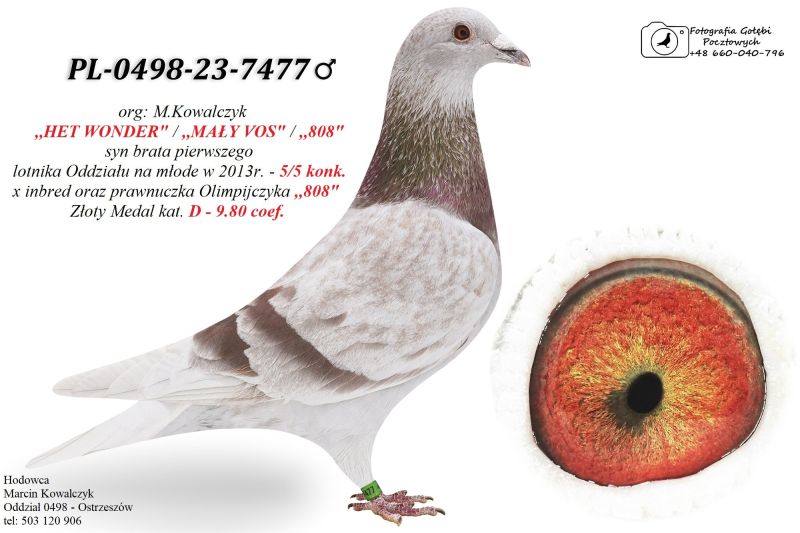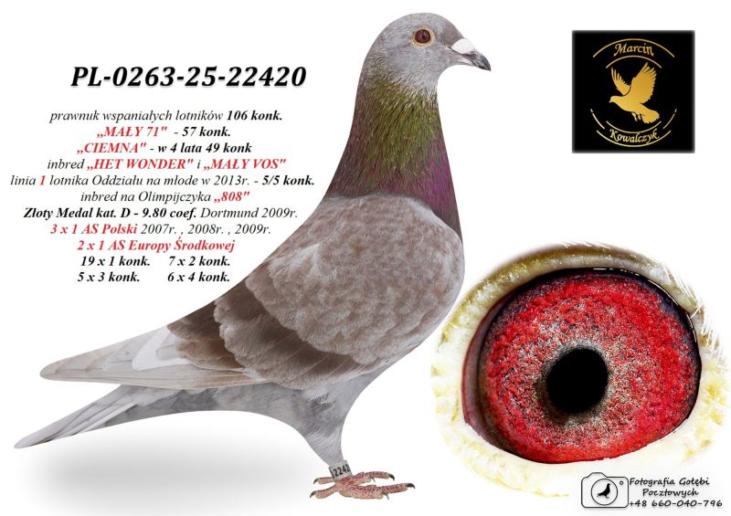 Oryginalny gołąb z hodowli Marcin Kowalczyk.# Szczegóły pochodzenia w rodowodzie. # Gołąb zaszczepiony przeciw Paramyxowirozie, Herpeswirus, Adenowirus , Ospa. # Więcej informacji pod nr tel. 503 120 906 # Możliwy transport