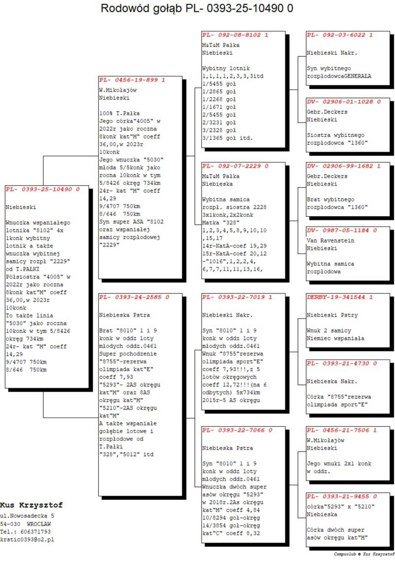 PL-0393-25-10490 oryg.KUŚ KRZYSZTOF wnuczka super ASÓW "8102" oraz "2229" T.Pałka