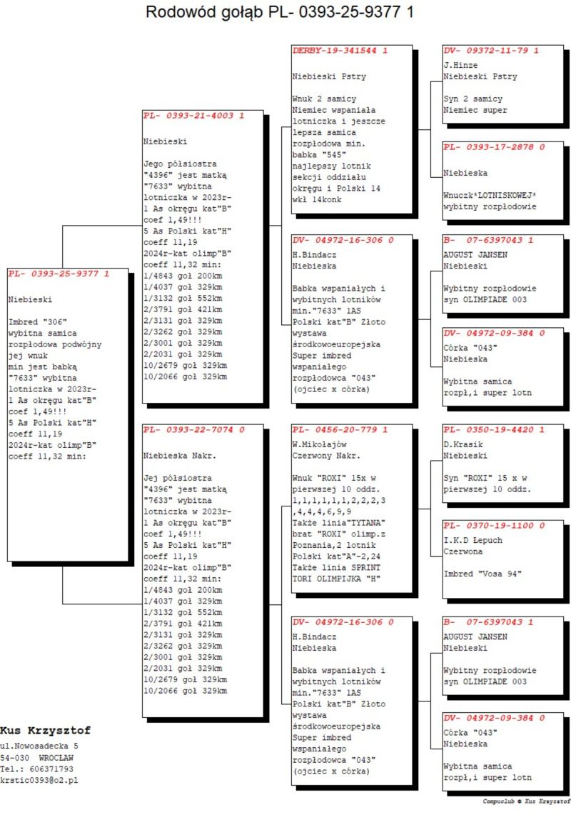 PL-0393-25-9377 oryg.KUŚ KRZYSZTOF imbred super samicy rozpł."306" H.BINDACZA