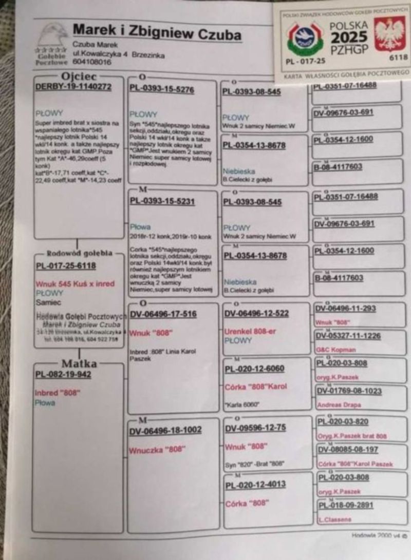 Płeć: samiec Hodowca - rasa: Oryg Czuba Marek Zakończenie: 5.02.2026 godz. 20:45