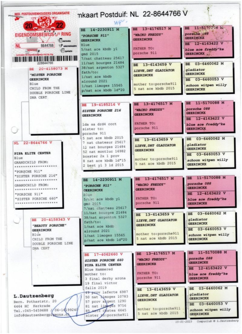 Mamy Państwu do zaoferowania gołębia PL-0318-25-7320 - Inbred Porsche 911. Więcej informacji pod numerem 502 283 650.