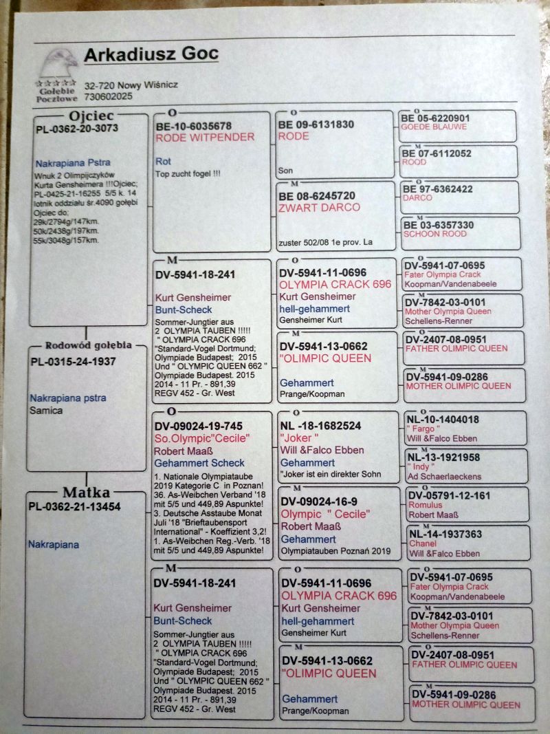 Oryginalny gołąb z hodowli Arkadiusz Goc. Szczegóły pochodzenia w rodowodzie. Więcej informacji pod nr tel.: 730602025 **Odbiór osobisty lub po uzgodnieniu transportu. Gołębie młode 2021rok 2 przodownik 7z 50, 1 przodownik 10z całości,24 przodownik okręgu Kraków, 2022rok 2 przodownik 7z 50, Vice Mistrz 10 z całości, 2023 rok 2 przodownik 10 z całości, 2 przodownik 10 z 50