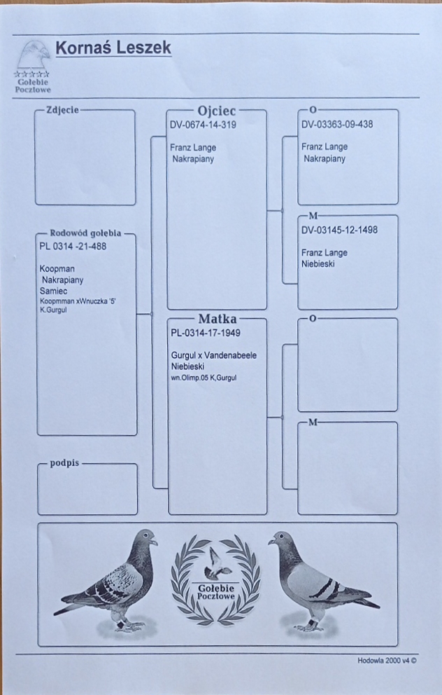 Oryginalny gołąb z hodowli Leszka Kornasia. Szczegóły pochodzenia w rodowodzie. Więcej informacji pod nr tel.: 880 108 765 **Transport kurierem koszt około 160zl