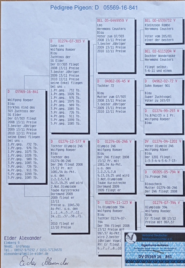 Oryginalny gołąb z hodowli Alexander Eider. Szczegóły pochodzenia w rodowodzie. Więcej informacji pod nr tel.: 880 108 765 **Transport kurierem koszt około 160zl po wylicytowaniu gołebia wplata na konto. Licytowane gołębie zlokalizowane na południu POLSKI