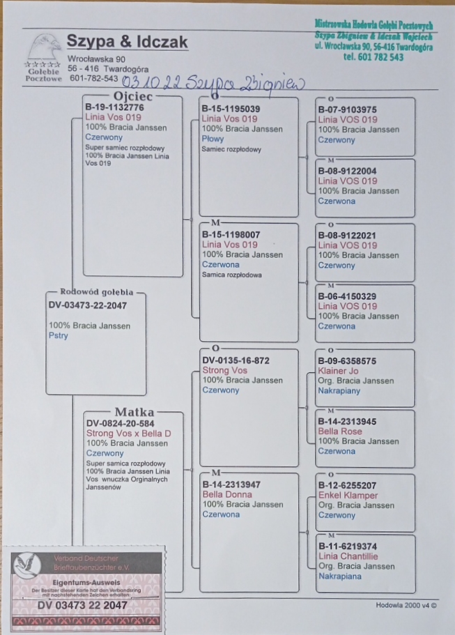 Oryginalny gołąb z hodowli Szypa-Idczak. Szczegóły pochodzenia w rodowodzie. Więcej informacji pod nr tel.: 880 108 765 **Transport kurierem koszt około 160zl po wylicytowaniu gołebia wplata na konto. Licytowane gołębie zlokalizowane na południu POLSKI