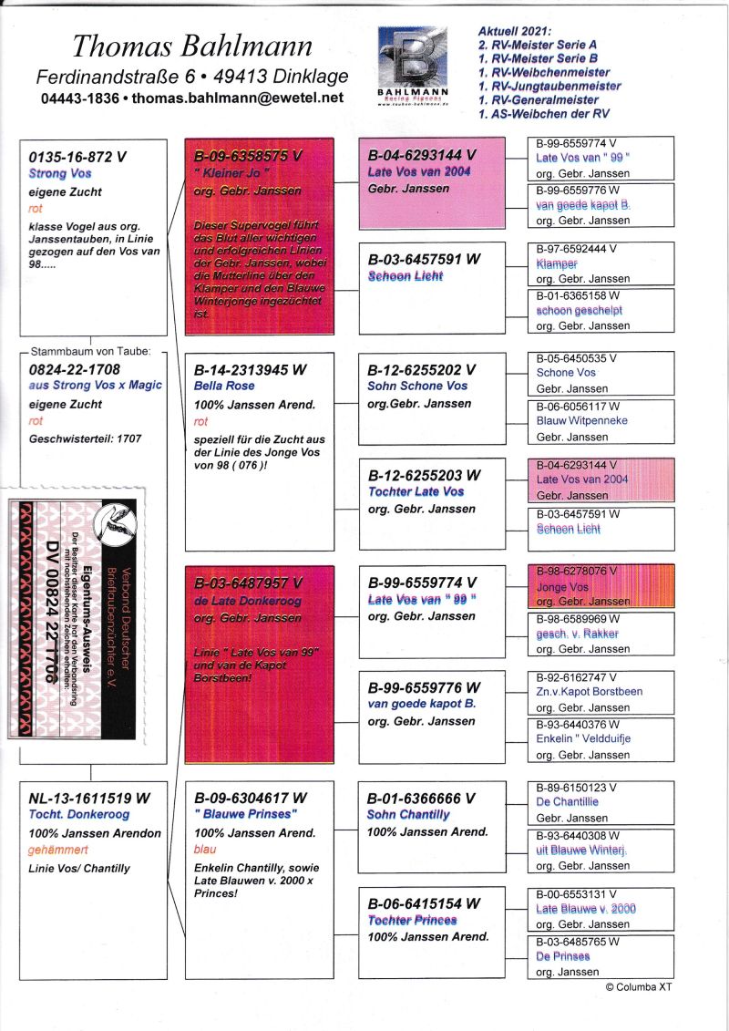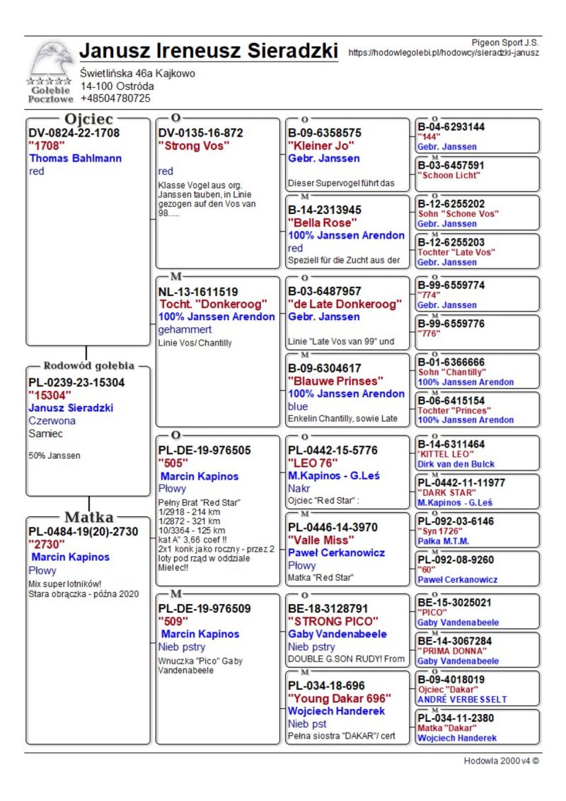 Szczegóły pochodzenia w rodowodzie. Możliwość wysyłki gołębi. Więcej informacji pod nr tel.504780725