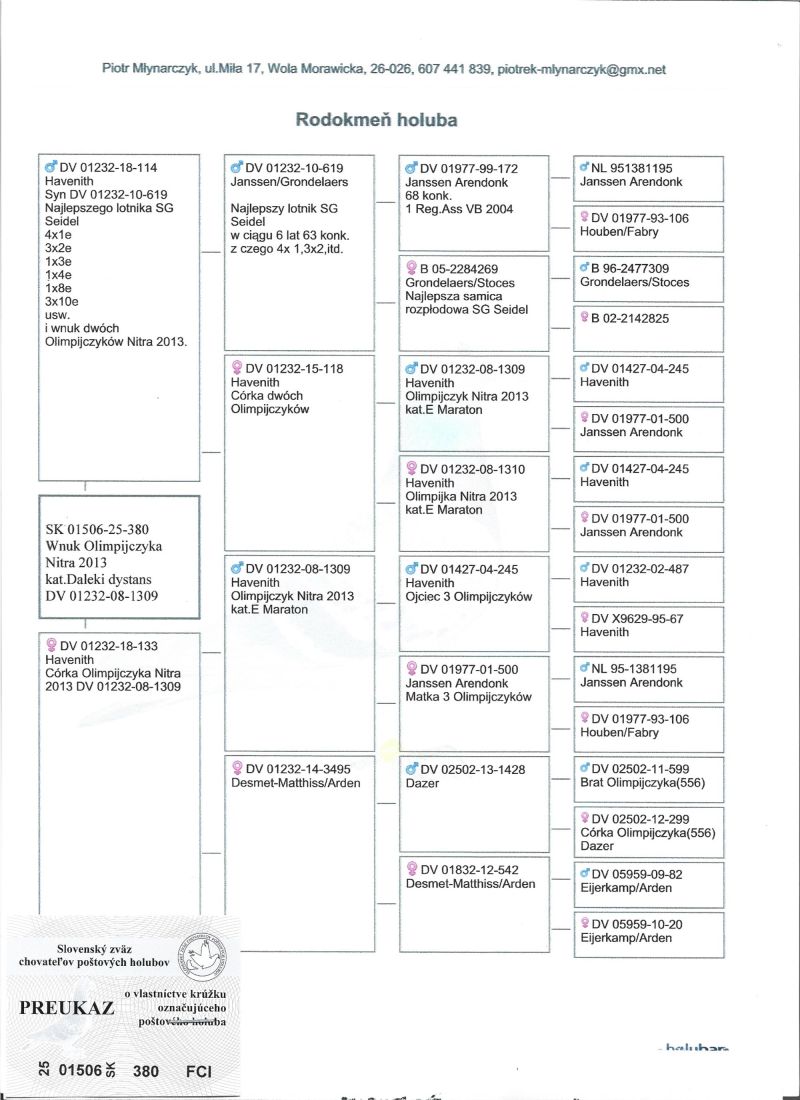 Havenith ,gołąb dalekodystansowy.Wnuk (wnuczka) Olimpijczyka Nitra 2013 DV 01232-08-1309 . Rodzina Seidel posiada siedmiu Olimpijczyków w kategorii daleki dystans, m.in. DV 01232-15-306 Olimpijka z Oradea 2022, pierwszy gołąb niemiec i 17 świata. Gołąbki zaszczepione msv i odrobaczone. Transport gołębi kurierem ,odbiór osobisty.