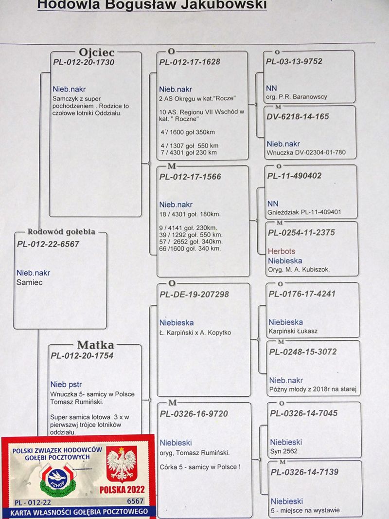 Samczyk po super samicy lotowej. Szczegóły w zamieszczonym rodowodzie.