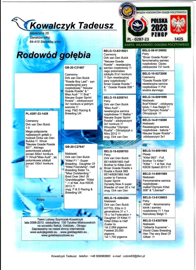 PL-0287-23-1425 Mega połączenie najlepszych gołębi z hodowli Dirka van Den Bulcka