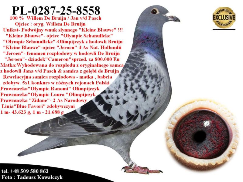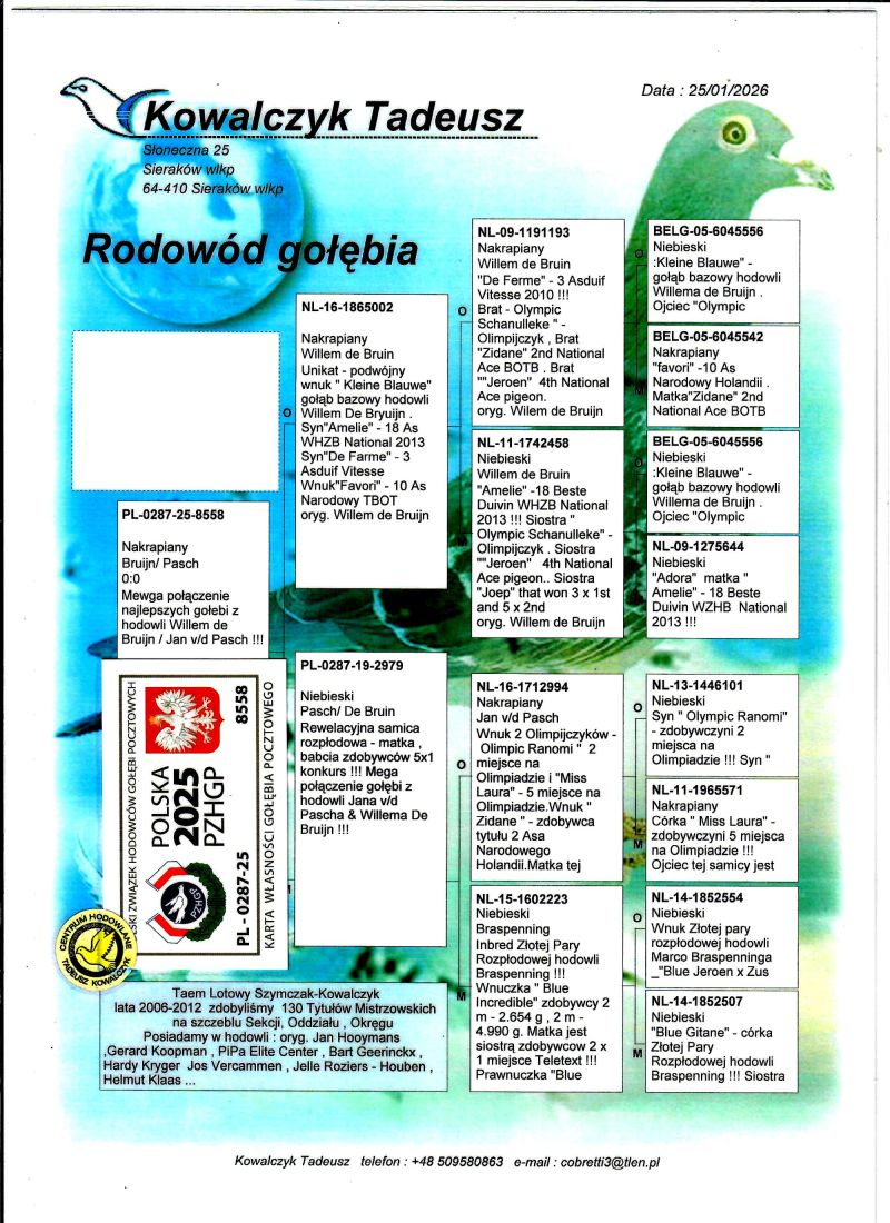 PL-0287-25-8558 Rewelacyjne połączenie gołębi z hodowli Willem de Bruijn & Jan v/d Pasch