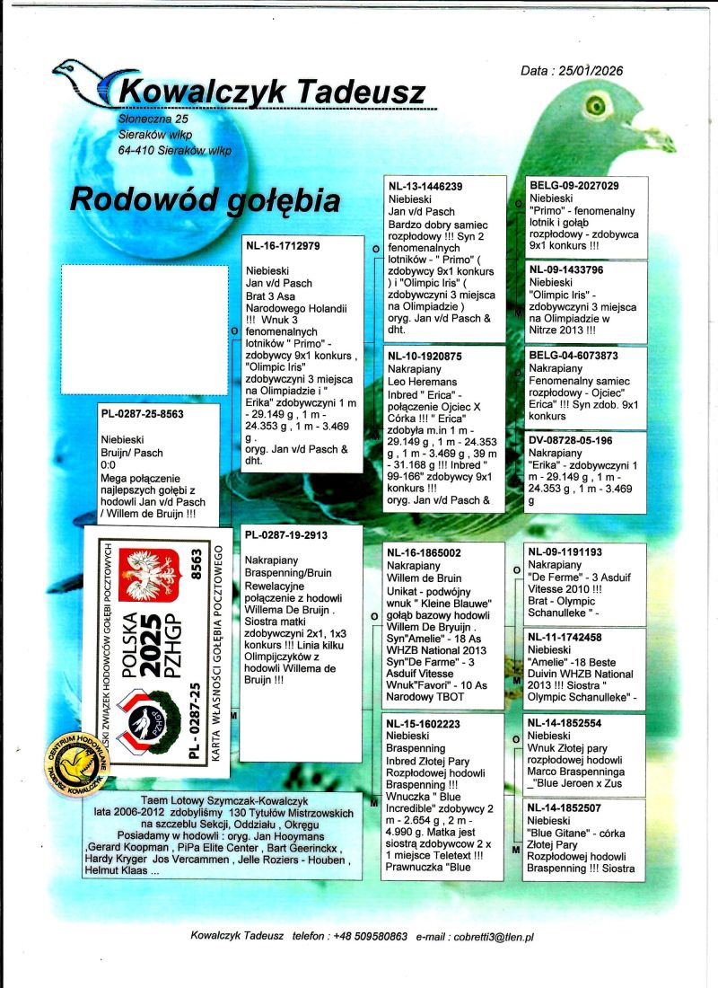 PL-0287-25-8563 Mega połączenie gołębi Jan v/d Pasch & Willem de Bruijn