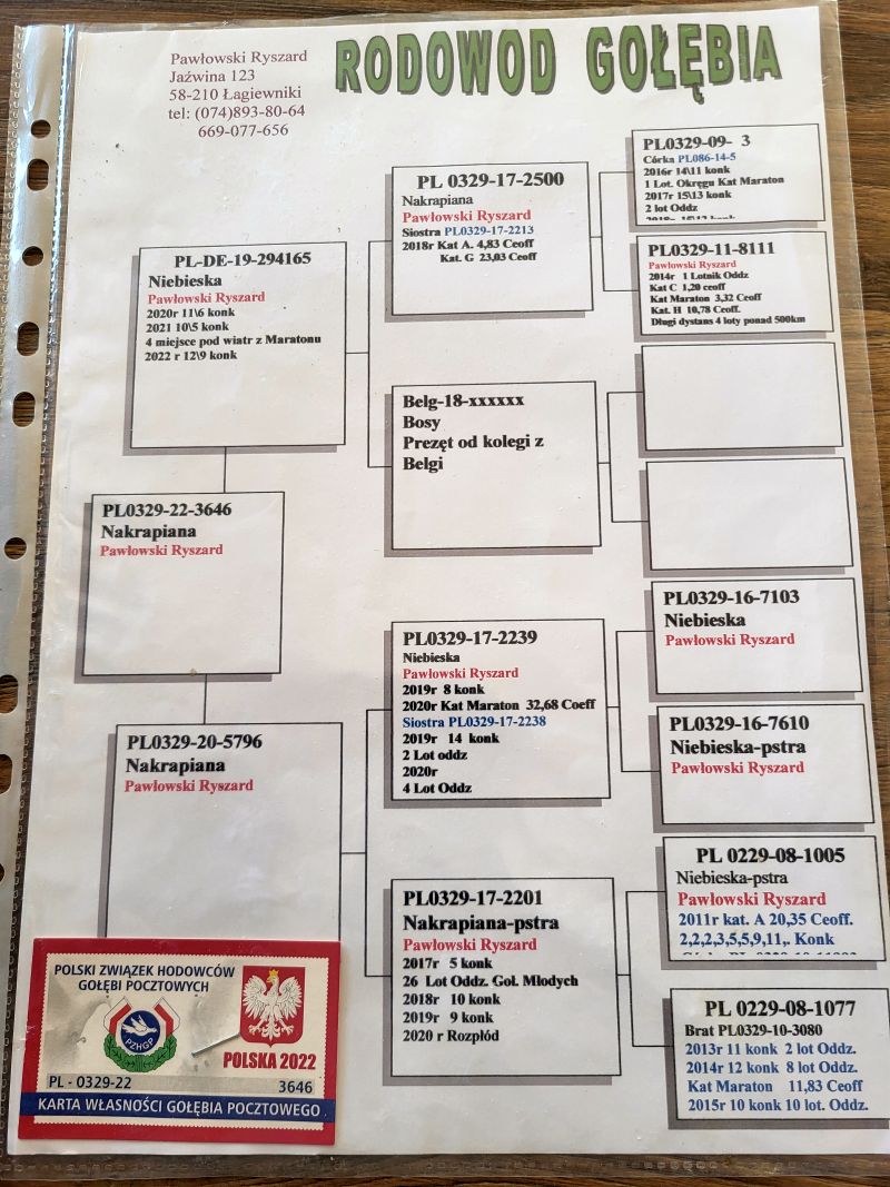 Oryginalny gołąb z hodowli Ryszarda Pawłowskiego. Szczegóły pochodzenia w rodowodzie. Więcej informacji pod nr tel.: 888330439 **Transport we własnym zakresie