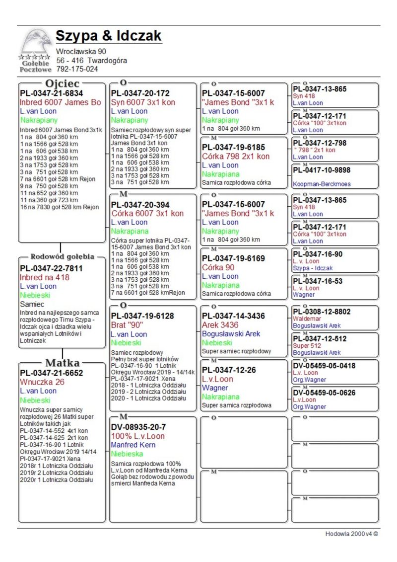 Profesjonalna hodowla z wieloletnim doświadczeniem, posiadająca w swoim stadzie materiał najwyższej światowej klasy. Więcej informacji w załączonych materiałach oraz pod nr tel. 792-175-024.Wysyłka 100 zł UWAGA -Transport gołębi odbędzie się między 16-Luty .a 18-Luty 2026 WSZYSTKIE GOŁĘBIE BĘDĄ PO KURACJACH-GOTOWE DO ŁĄCZENIA W PARY