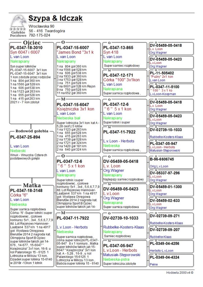 Profesjonalna hodowla z wieloletnim doświadczeniem, posiadająca w swoim stadzie materiał najwyższej światowej klasy. Więcej informacji w załączonych materiałach oraz pod nr tel. 792-175-024.Wysyłka 100 zł UWAGA -Transport gołębi odbędzie się między 16-Luty .a 18-Luty 2026 WSZYSTKIE GOŁĘBIE BĘDĄ PO KURACJACH-GOTOWE DO ŁĄCZENIA W PARY