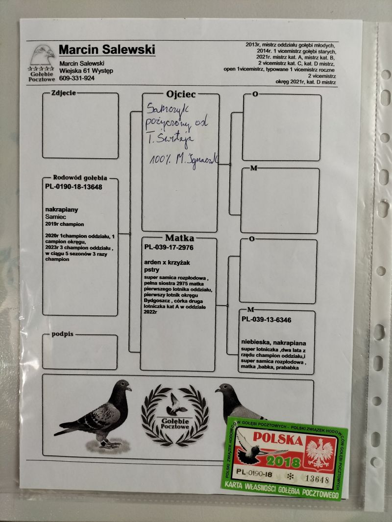 PL-0190-18-13648 oryg Marcin Salewski/ 3 krotny champion oddziału. / Gratis Samiec B. Morel
