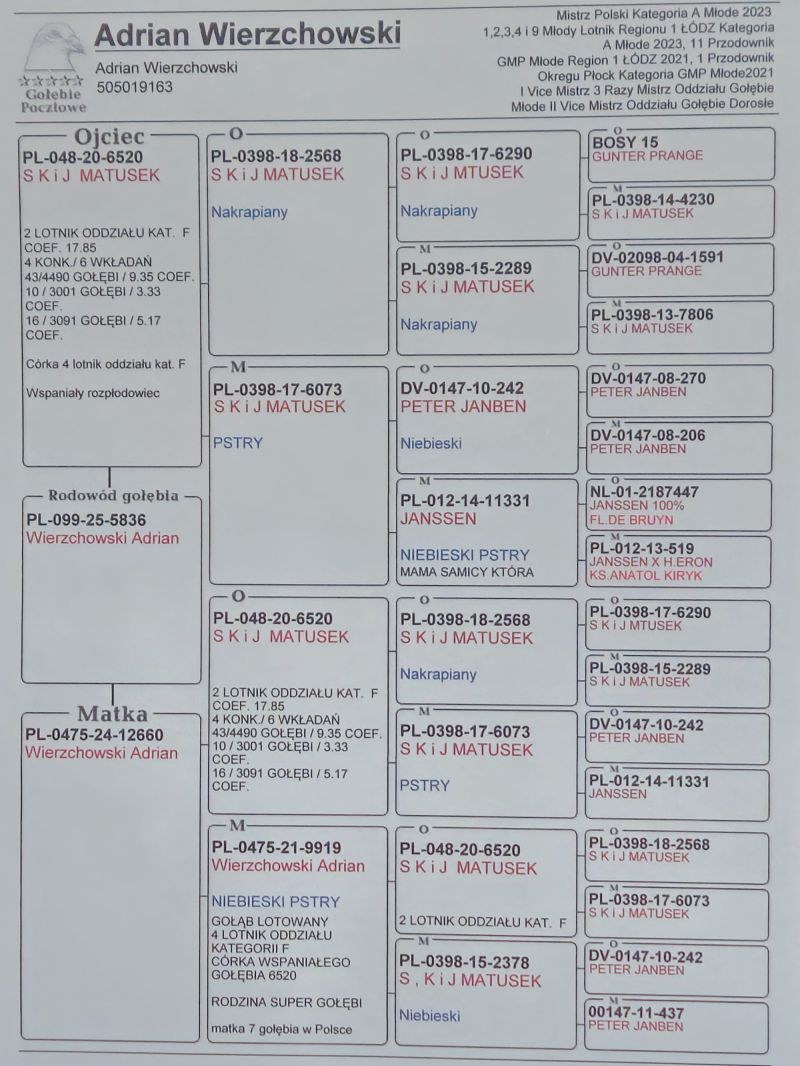 Płeć: młody gołąb Hodowca - rasa: Wierzchowski Adrian Zakończenie: 10.02.2026 godz. 20:34