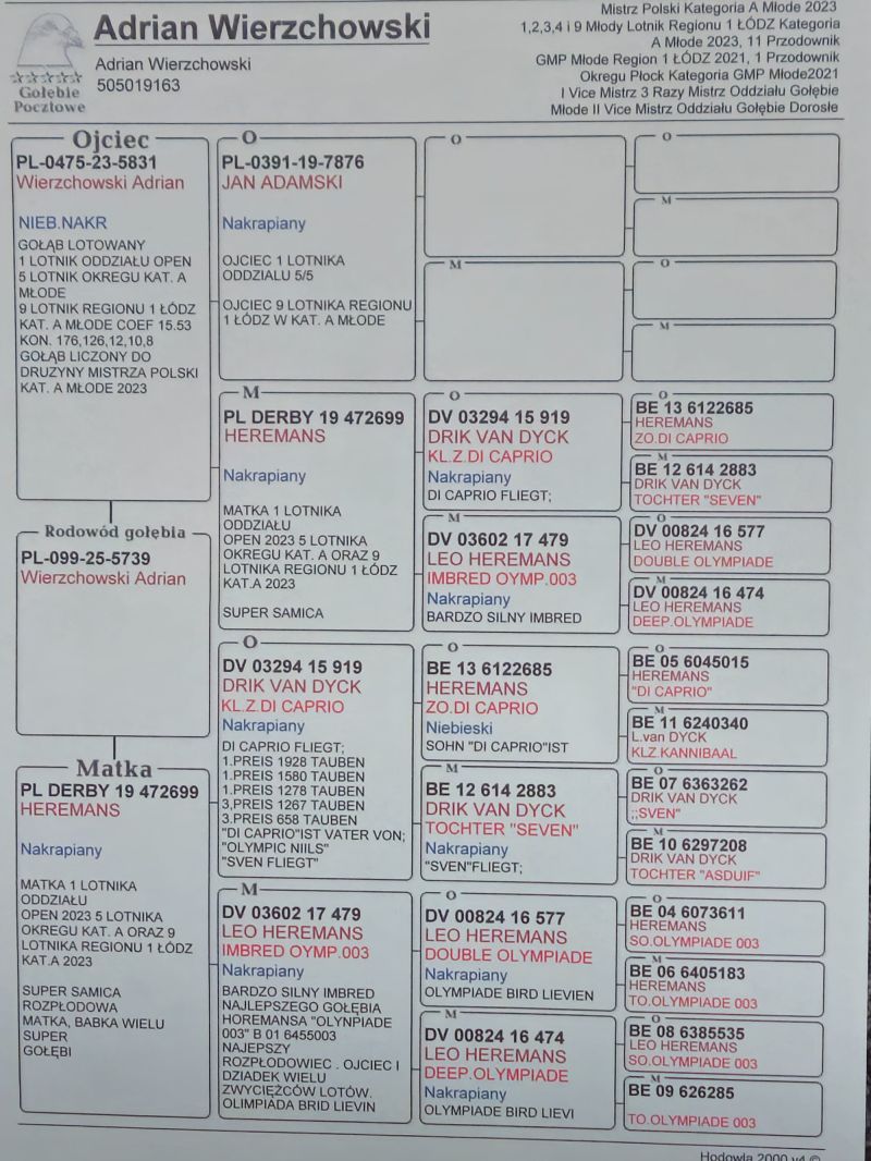 Płeć: młody gołąb Hodowca - rasa: Wierzchowski Adrian Zakończenie: 10.02.2026 godz. 20:40
