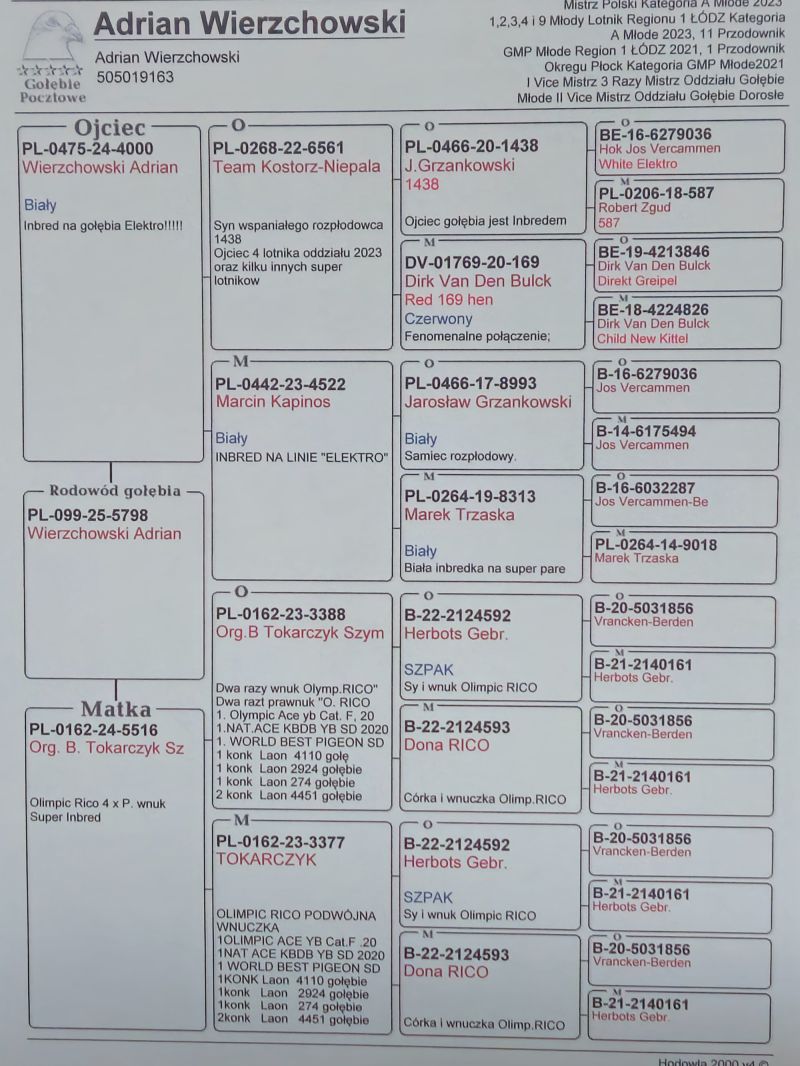 Płeć: młody gołąb Hodowca - rasa: Wierzchowski Adrian Zakończenie: 11.02.2026 godz. 20:22