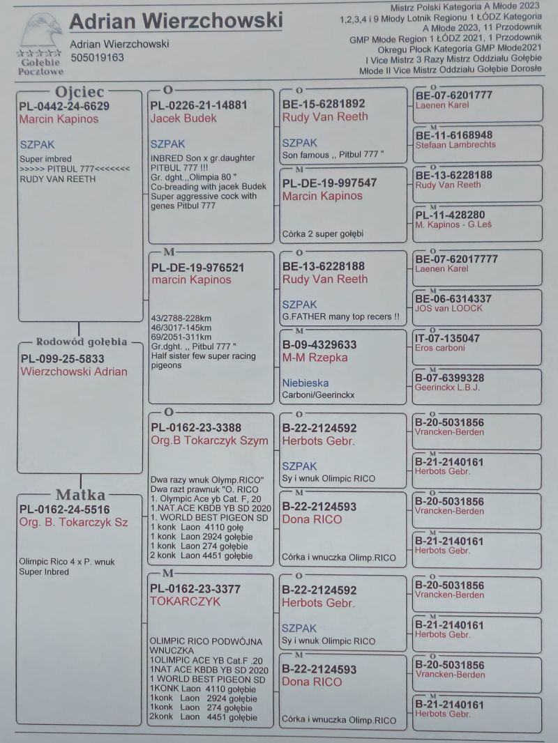 Płeć: młody gołąb Hodowca - rasa: Wierzchowski Adrian Zakończenie: 11.02.2026 godz. 20:34