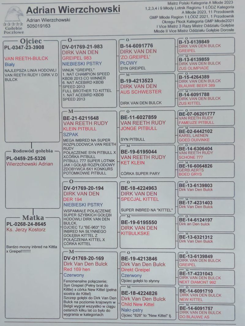 Płeć: młody gołąb Hodowca - rasa: Wierzchowski Adrian Zakończenie: 11.02.2026 godz. 20:36