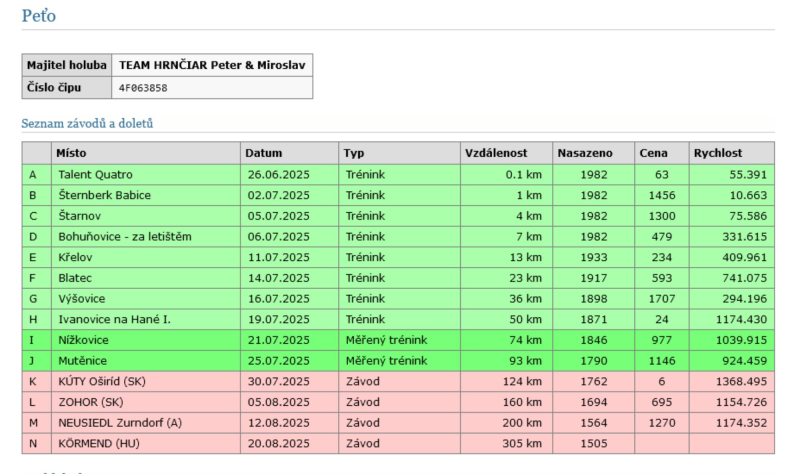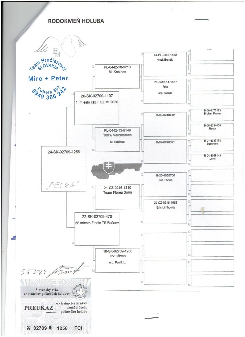 SK-03102-25-127 PETO OLR Talent Quatro Šternberk 2025 LOT nr 1 - 124 km 6 miejsce na 1762 gołębie TYLKO KUP TERAZ