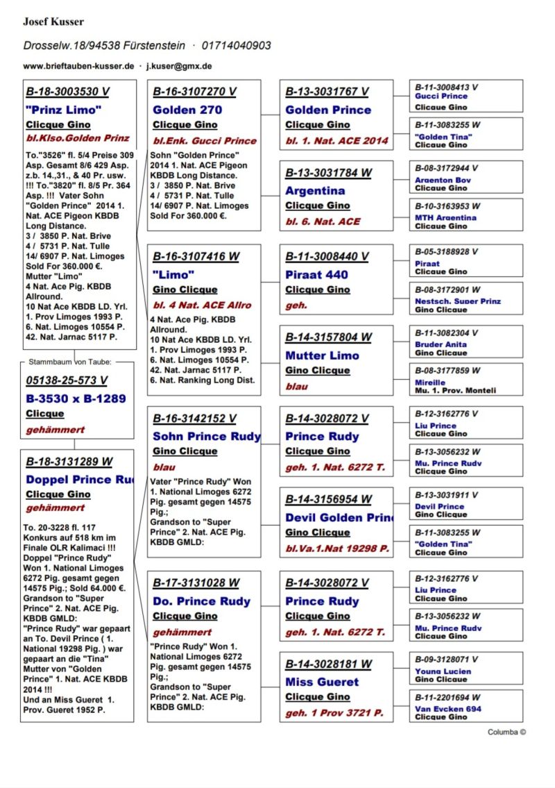 Oryginalny gołąb z hodowli kolegi Josef Kusser, najprawdopodobniej samczyk. Szczegóły pochodzenia w rodowodzie.Więcej informacji pod nr tel.: Josef Kusser +491714040903 Adrian +48692793463