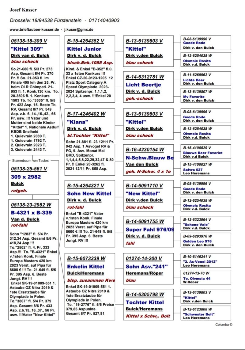 DV-05138-25-561 Dirk v.d.Bulck/Heremans - Josef Kusser 4 miejsce w Niemczech gołębi młodych 2025!