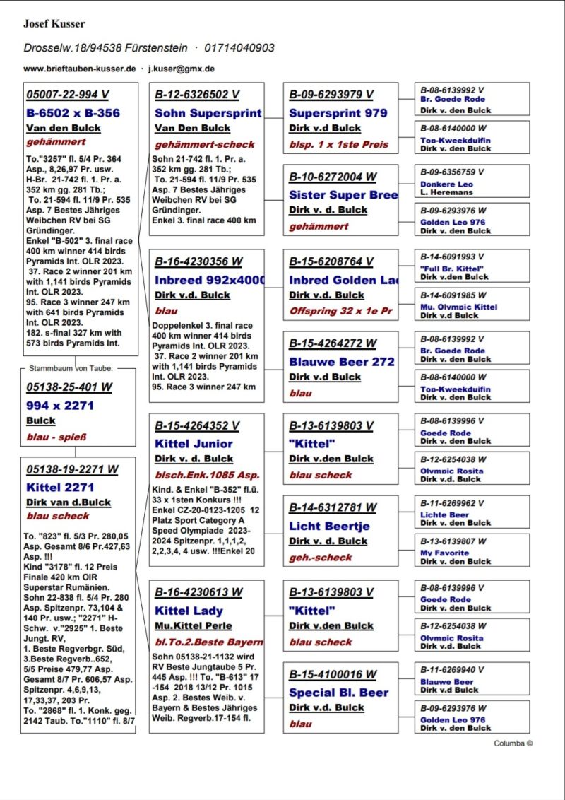 DV-05138-25-401 100% Dirk v.d.Bulck- Josef Kusser 4 miejsce w Niemczech gołębi młodych 2025!