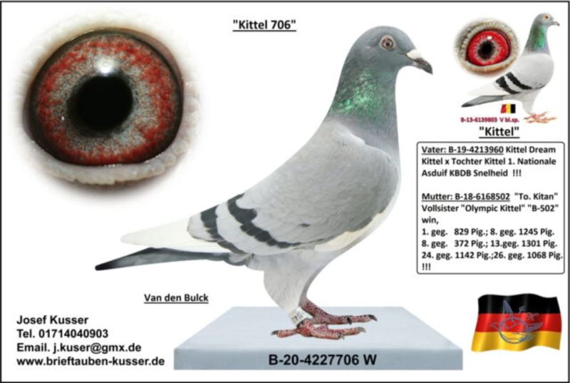 Oryginalny gołąb z hodowli kolegi Josef Kusser, najprawdopodobniej samczyk. Szczegóły pochodzenia w rodowodzie.Więcej informacji pod nr tel.: Josef Kusser +491714040903 Adrian +48692793463