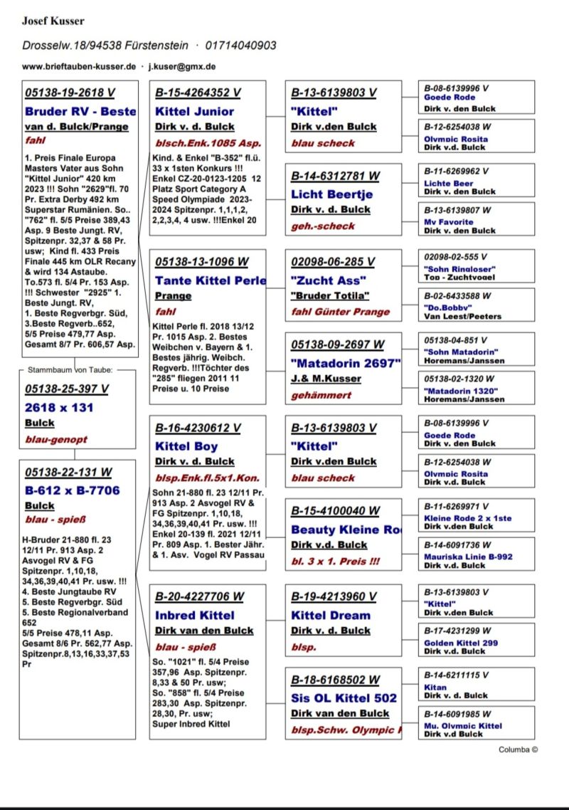 DV-05128-25-397 100% Dirk v.d.Bulck- Josef Kusser 4 miejsce w Niemczech gołębi młodych 2025!