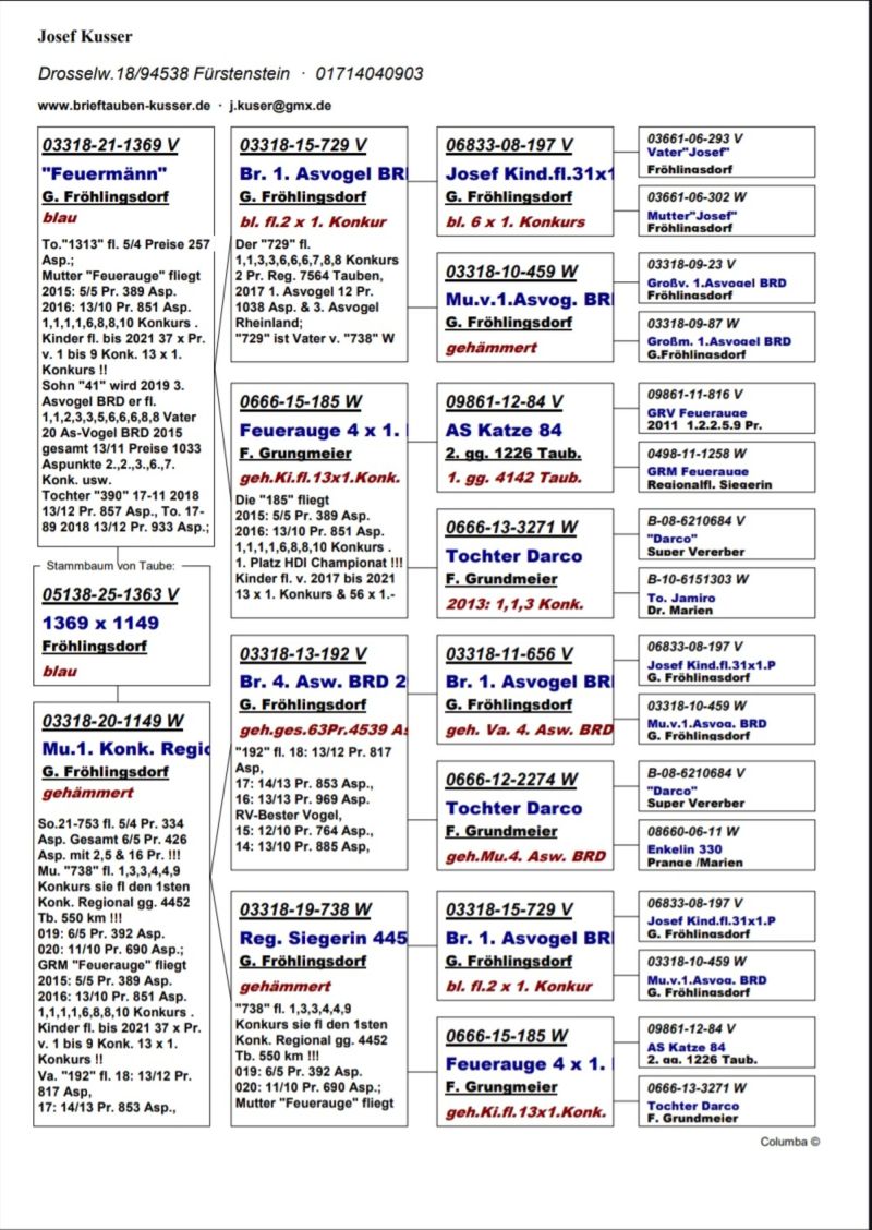 Oryginalny gołąb z hodowli kolegi Josef Kusser.Najprawdopodobiej samczyk.Szczegóły pochodzenia w rodowodzie.Więcej informacji pod nr tel.: Josef Kusser +491714040903 Adrian +48692793463