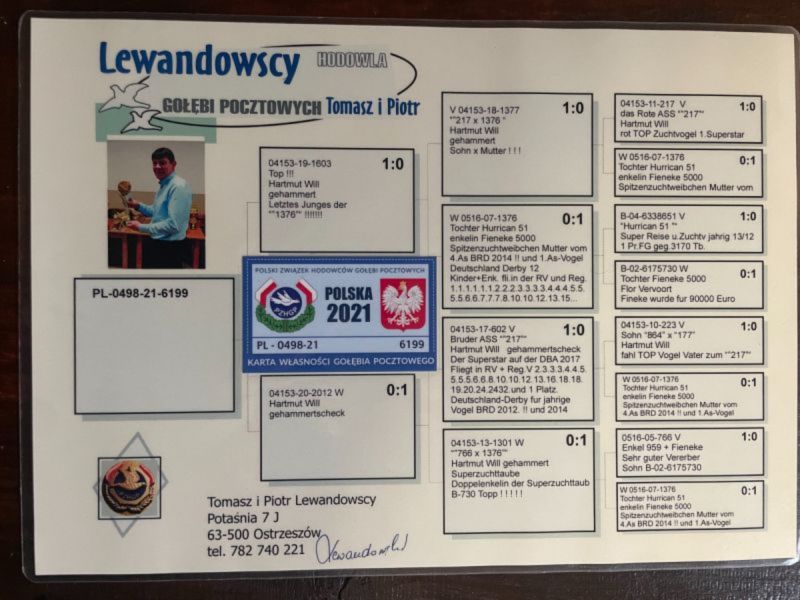 PL-0498-21-6199 - Oryg. Tomasz i Piotr Lewandowscy (100% Hartmut Will) - Wnuk "1376"!!!