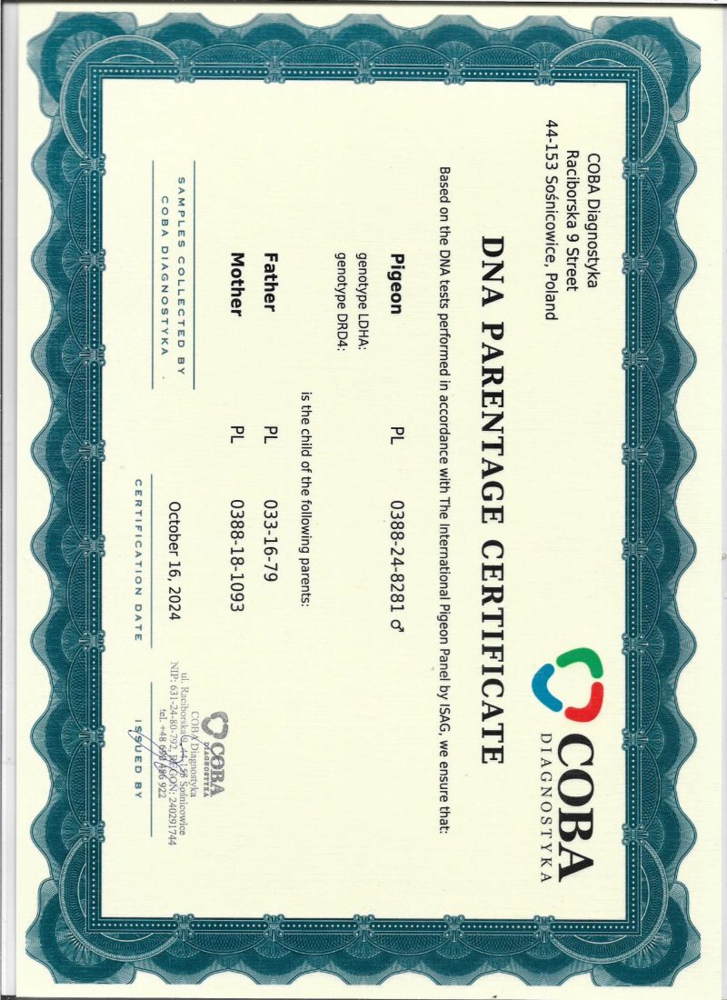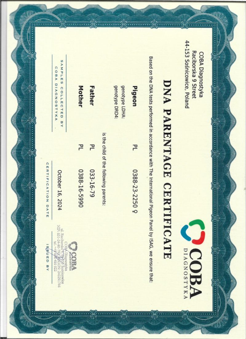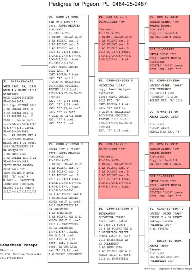 PL-0484-25-2487 - oryg. S. Potępa (100% P. Mędrysa) INBRED wnuk 4 x OLIMP. 2 x 79, 1 x 5990, 1 x 1093 !!!