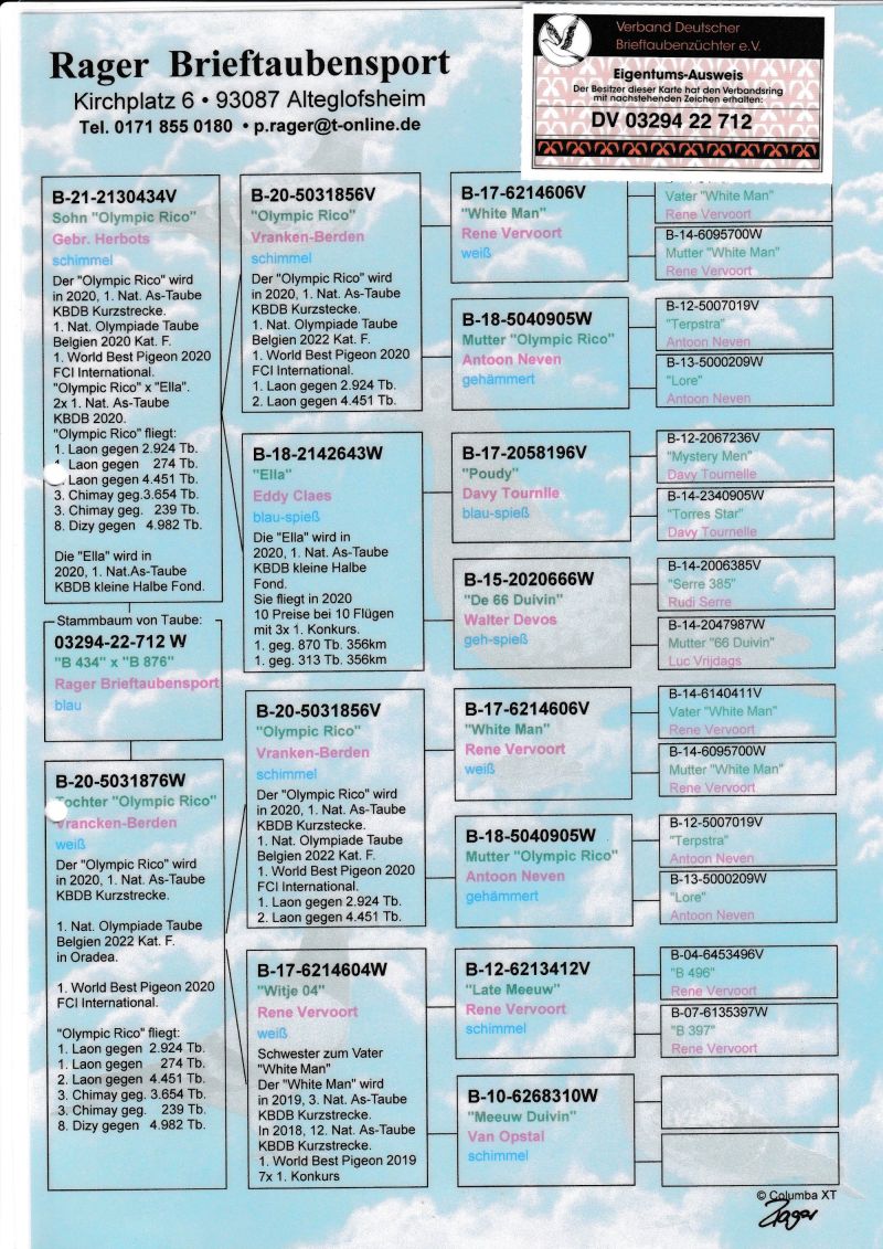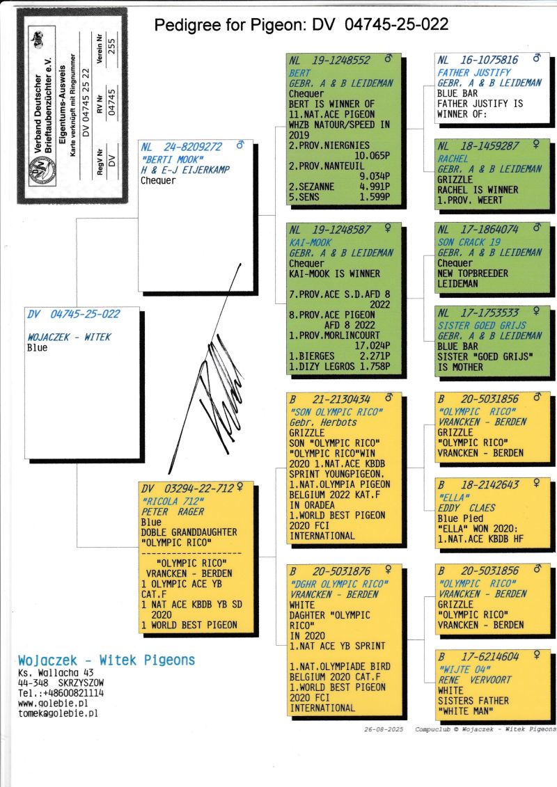 KOSZT TRANSPORTU 120 ZŁ (maksymalnie 3 gołębie w jednej paczce). KOSZTA ZA GOŁĘBIA I TRANSPORT KLIENCI BĘDĄ PŁACIĆ BEZPOŚREDNIO KIEROWCY KTÓRY PRZYWIEZIE GOŁĘBIE. Gołąb z hodowli WOJACZEK-WITEK. Szczegóły pochodzenia w rodowodzie. Kontakt w sprawie gołębi oraz transportu pod numerem telefonu +48 600 821 114