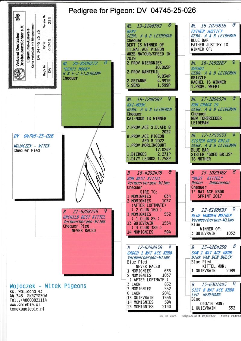 KOSZT TRANSPORTU 120 ZŁ (maksymalnie 3 gołębie w jednej paczce). KOSZTA ZA GOŁĘBIA I TRANSPORT KLIENCI BĘDĄ PŁACIĆ BEZPOŚREDNIO KIEROWCY KTÓRY PRZYWIEZIE GOŁĘBIE. Gołąb z hodowli WOJACZEK-WITEK. Szczegóły pochodzenia w rodowodzie. Kontakt w sprawie gołębi oraz transportu pod numerem telefonu +48 600 821 114
