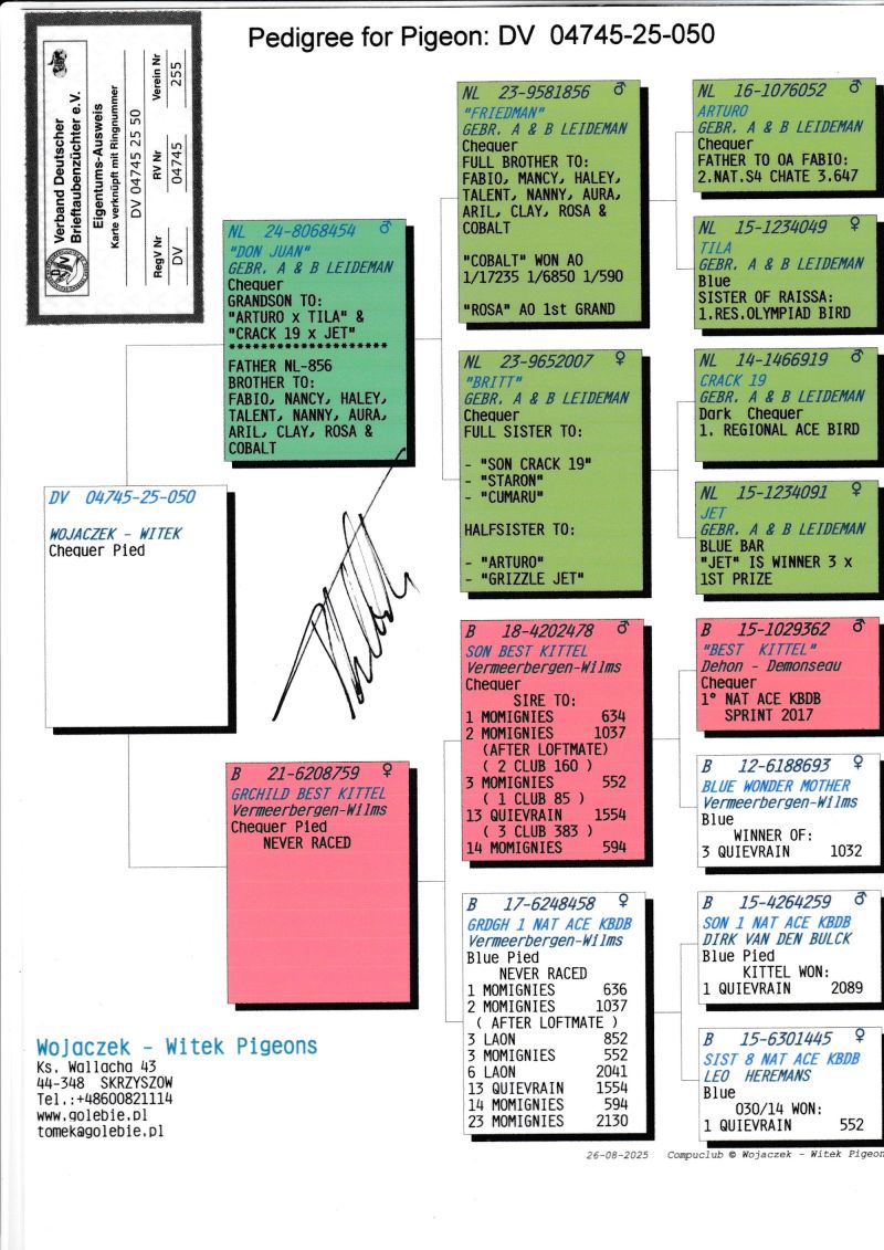 KOSZT TRANSPORTU 120 ZŁ (maksymalnie 3 gołębie w jednej paczce). KOSZTA ZA GOŁĘBIA I TRANSPORT KLIENCI BĘDĄ PŁACIĆ BEZPOŚREDNIO KIEROWCY KTÓRY PRZYWIEZIE GOŁĘBIE. Gołąb z hodowli WOJACZEK-WITEK. Szczegóły pochodzenia w rodowodzie. Kontakt w sprawie gołębi oraz transportu pod numerem telefonu +48 600 821 114