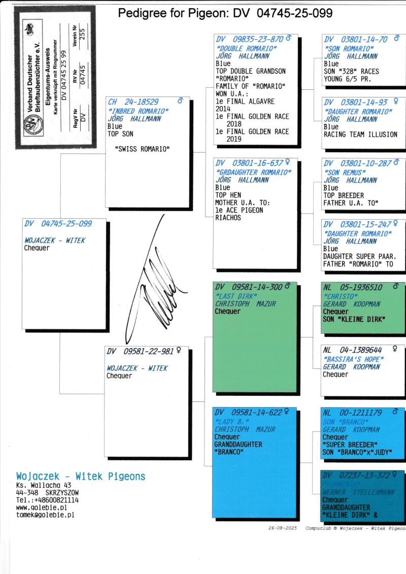 KOSZT TRANSPORTU 120 ZŁ (maksymalnie 3 gołębie w jednej paczce). KOSZTA ZA GOŁĘBIA I TRANSPORT KLIENCI BĘDĄ PŁACIĆ BEZPOŚREDNIO KIEROWCY KTÓRY PRZYWIEZIE GOŁĘBIE. Gołąb z hodowli WOJACZEK-WITEK. Szczegóły pochodzenia w rodowodzie. Kontakt w sprawie gołębi oraz transportu pod numerem telefonu +48 600 821 114