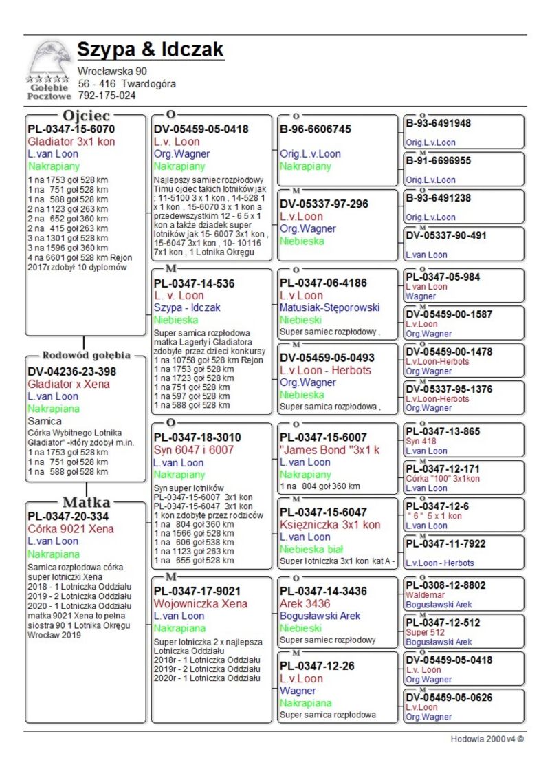 Profesjonalna hodowla z wieloletnim doświadczeniem, posiadająca w swoim stadzie materiał najwyższej światowej klasy. Więcej informacji w załączonych materiałach oraz pod nr tel. 792-175-024.Wysyłka 100 zł UWAGA -Transport gołębi odbędzie się między 16-Luty .a 18-Luty 2026 WSZYSTKIE GOŁĘBIE BĘDĄ PO KURACJACH-GOTOWE DO ŁĄCZENIA W PARY
