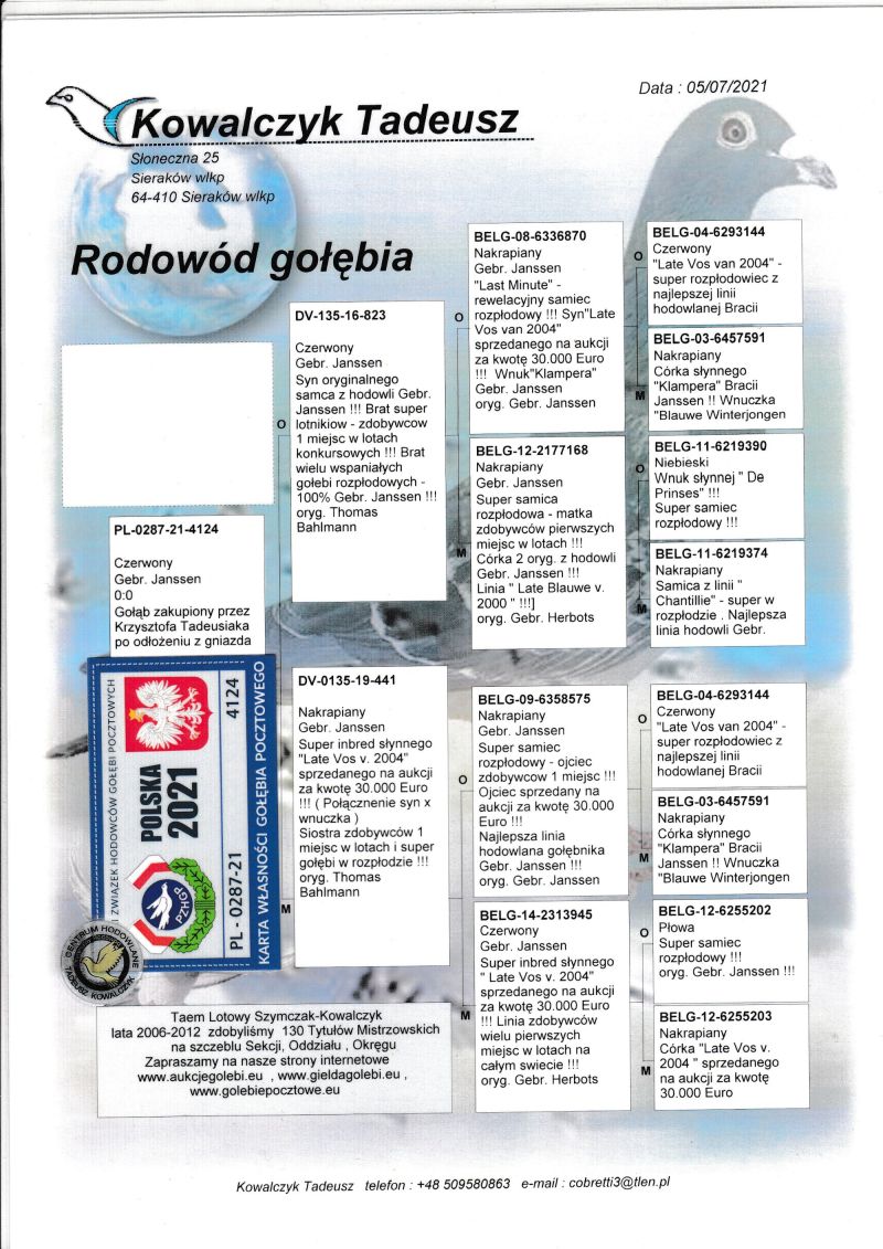Profesjonalna hodowla z wieloletnim doświadczeniem, posiadająca w swoim stadzie materiał najwyższej światowej klasy. Więcej informacji w załączonych materiałach oraz pod nr tel. 792-175-024.Wysyłka 100 zł UWAGA -Transport gołębi odbędzie się między 16-Luty .a 18-Luty 2026 WSZYSTKIE GOŁĘBIE BĘDĄ PO KURACJACH-GOTOWE DO ŁĄCZENIA W PARY