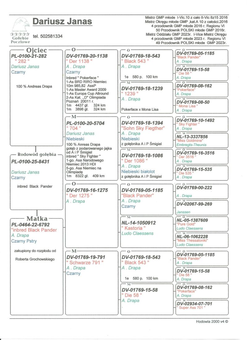Oryginalny gołąb z hodowli Dariusz Janas . Szczegóły pochodzenia w rodowodzie . Więcej informacji pod nr. tel . 502581334 ......... koszt transportu do 3 szt. 120 zł. 150zł. w zależności od kuriera.