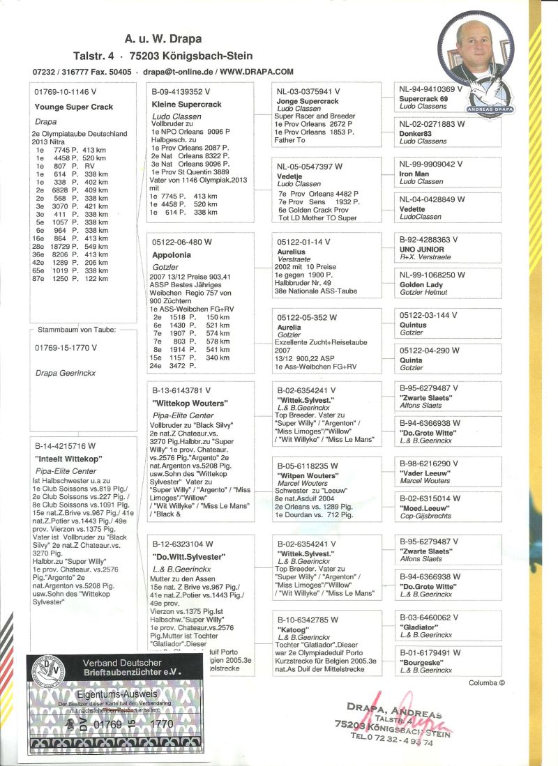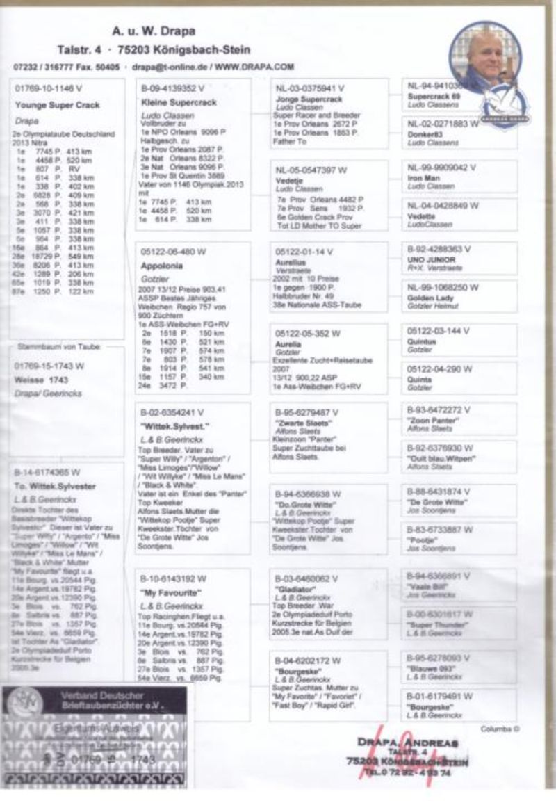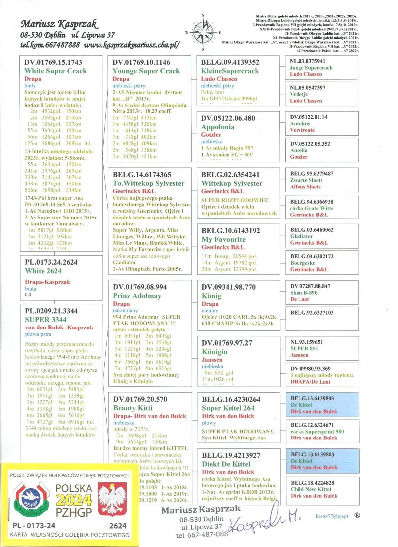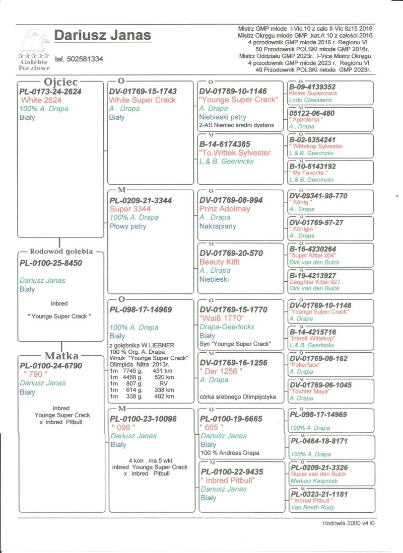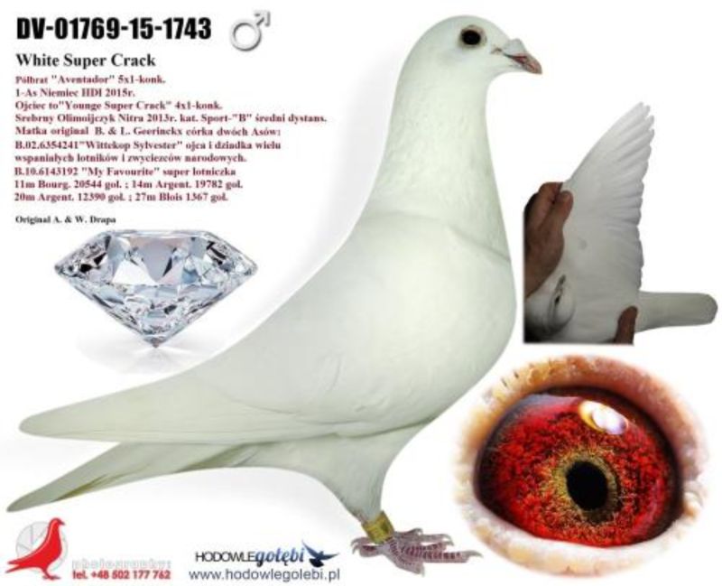 Oryginalny gołąb z hodowli Dariusz Janas . Szczegóły pochodzenia w rodowodzie . Więcej informacji pod nr. tel . 502581334 ......... koszt transportu do 3 szt. 120 zł. 150zł. w zależności od kuriera.
