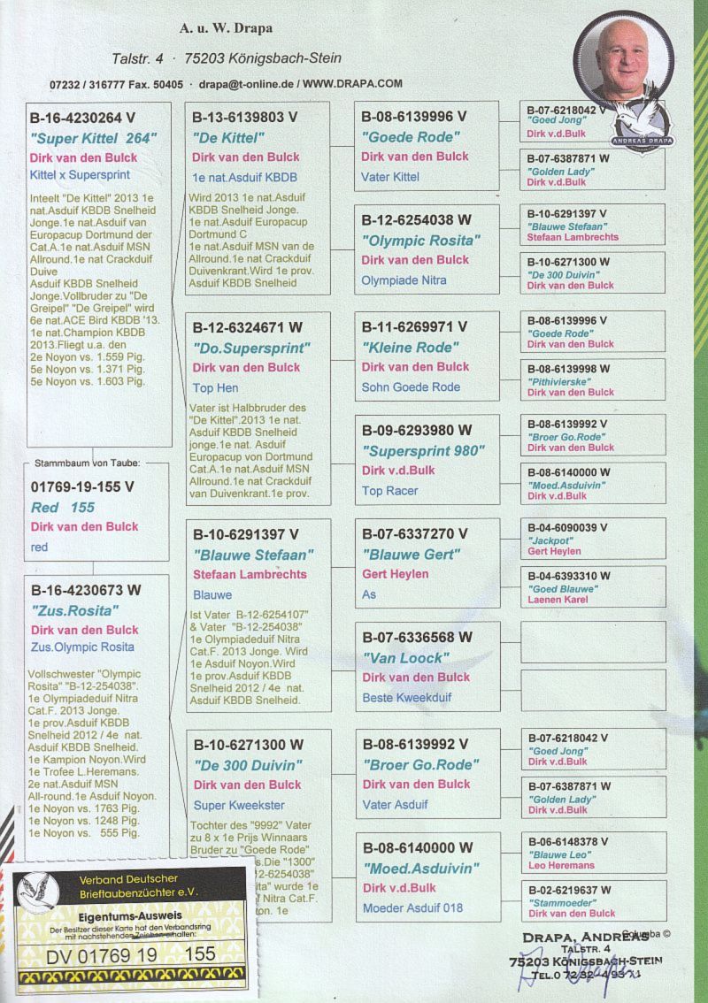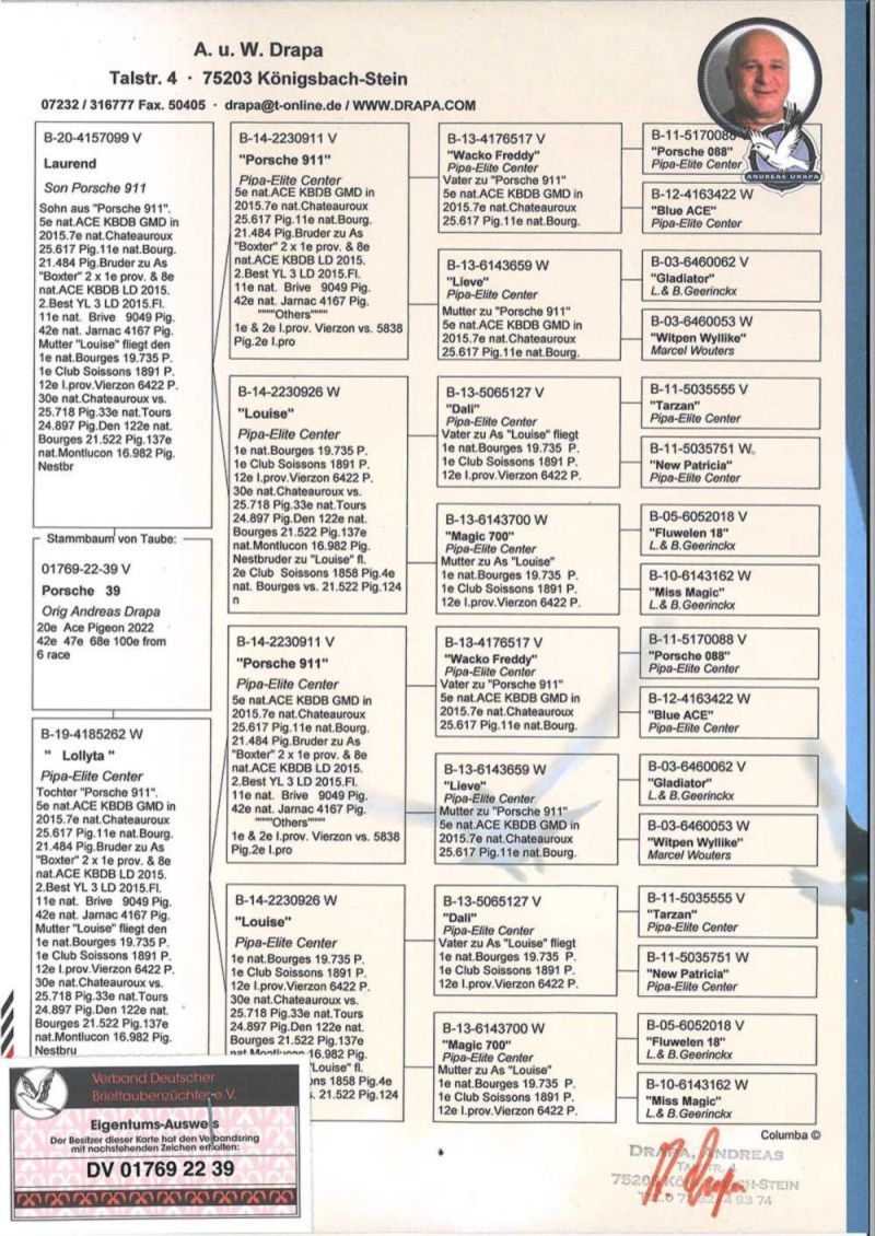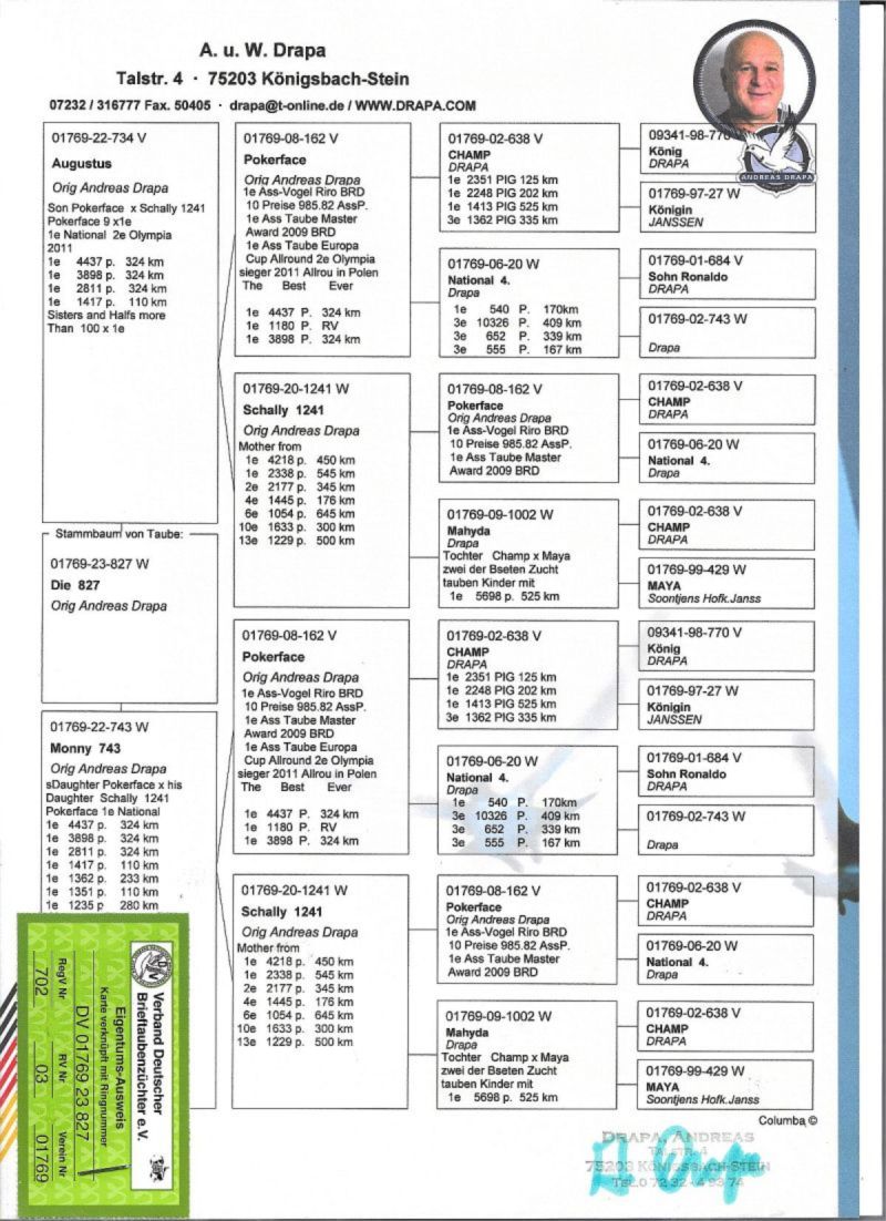 Oryginalny gołąb z hodowli Dariusz Janas . Szczegóły pochodzenia w rodowodzie . Więcej informacji pod nr. tel . 502581334 ......... koszt transportu do 3 szt. 120 zł. 150zł. w zależności od kuriera.
