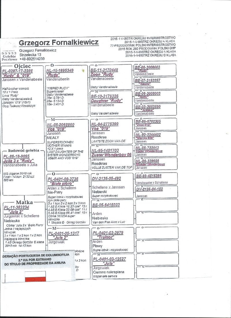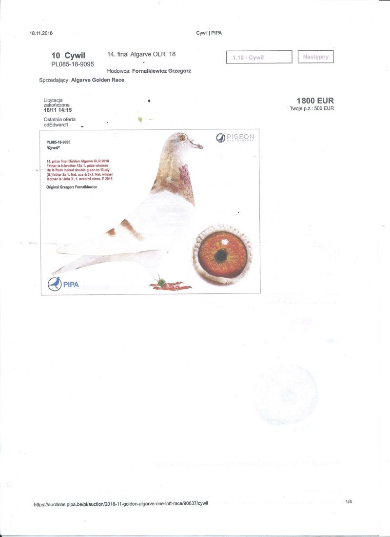 AUKCJA PROMOCYJNA (Cena obowiązuje wyłącznie na tej aukcji) Profesjonalna hodowla z wieloletnim doświadczeniem, posiadająca w swoim stadzie materiał najwyższej światowej klasy. Super budowa i pochodzenie więcej w rodowodzie. Z TEJ LINII WYWODZĄ SIĘ ZWYCIĘZCY WG, ODDZIAŁU I OKRĘGU. "RODZICE LOTOWANI NA WG ALGAVRE"