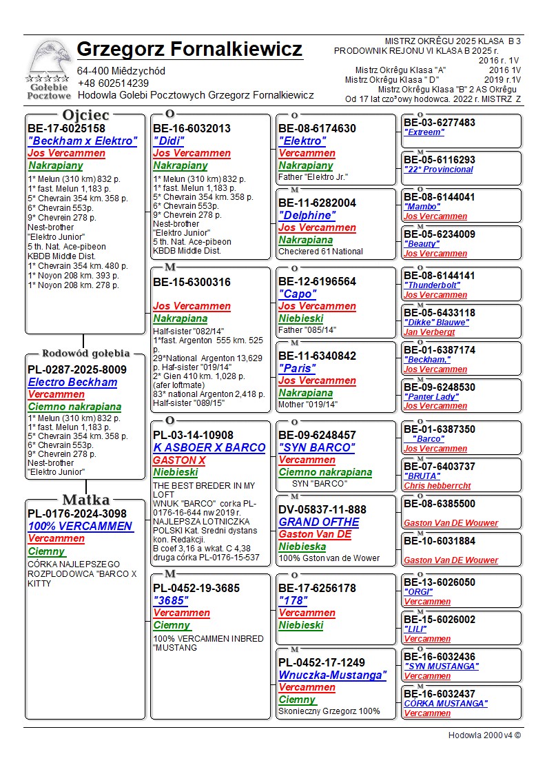 AUKCJA PROMOCYJNA (Cena obowiązuje wyłącznie na tej aukcji) Profesjonalna hodowla z wieloletnim doświadczeniem, posiadająca w swoim stadzie materiał najwyższej światowej klasy. Super budowa i pochodzenie więcej w rodowodzie. Z TEJ LINII WYWODZĄ SIĘ ZWYCIĘZCY WG, ODDZIAŁU I OKRĘGU. "RODZICE LOTOWANI NA WG ALGAVRE"