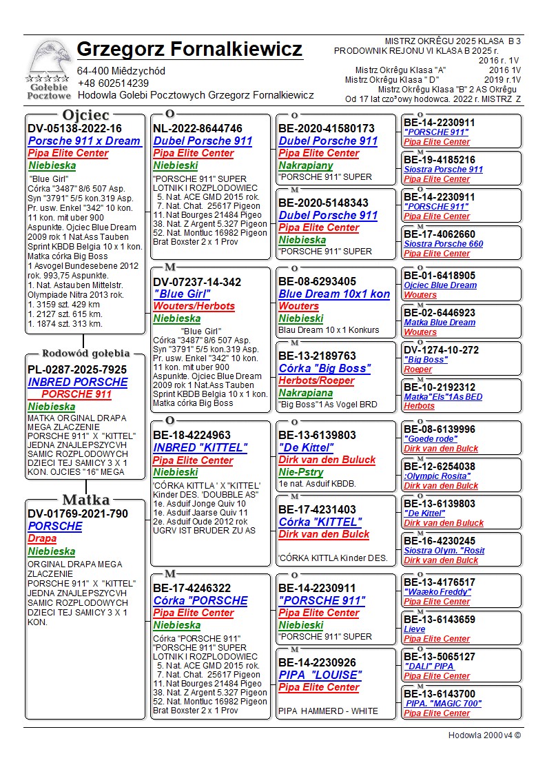 AUKCJA PROMOCYJNA (Cena obowiązuje wyłącznie na tej aukcji) Profesjonalna hodowla z wieloletnim doświadczeniem, posiadająca w swoim stadzie materiał najwyższej światowej klasy. Super budowa i pochodzenie więcej w rodowodzie. Z TEJ LINII WYWODZĄ SIĘ ZWYCIĘZCY WG, ODDZIAŁU I OKRĘGU. "RODZICE LOTOWANI NA WG ALGAVRE"