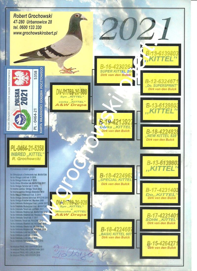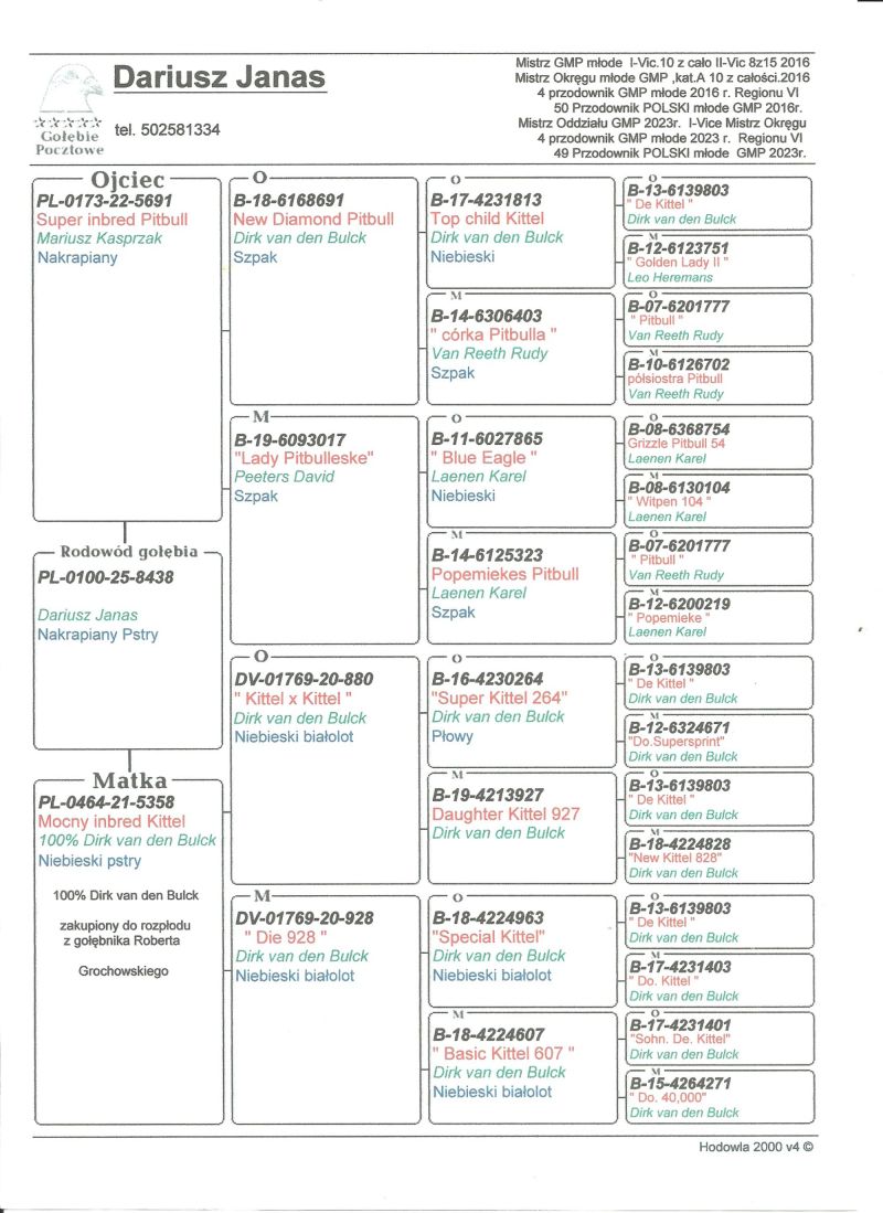 Oryginalny gołąb z hodowli Dariusz Janas . Szczegóły pochodzenia w rodowodzie . Więcej informacji pod nr. tel . 502581334 ......... koszt transportu do 3 szt. 120 zł. 150zł. w zależności od kuriera.