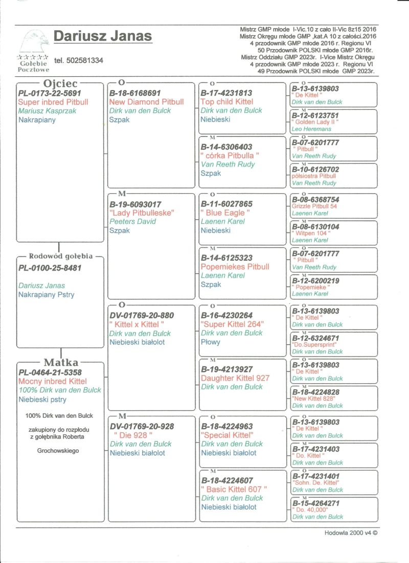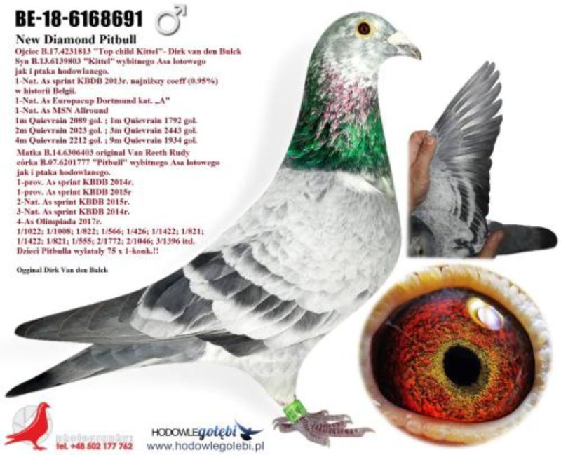 Oryginalny gołąb z hodowli Dariusz Janas . Szczegóły pochodzenia w rodowodzie . Więcej informacji pod nr. tel . 502581334 ......... koszt transportu do 3 szt. 120 zł. 150zł. w zależności od kuriera.