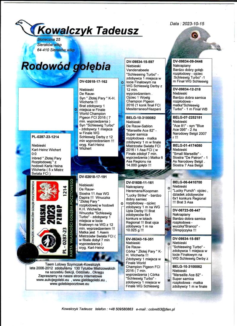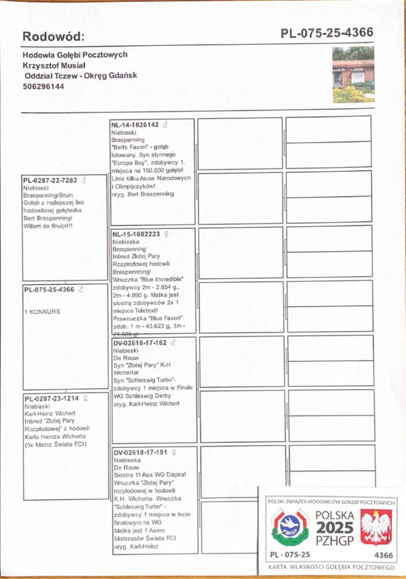 Młode po sezonie lotowym. Rodzeństwo brało udział w lotach na wspólnych gołębnikach. Więcej szczegółów w rodowodzie oraz pod numerem telefonu: 506 296 144