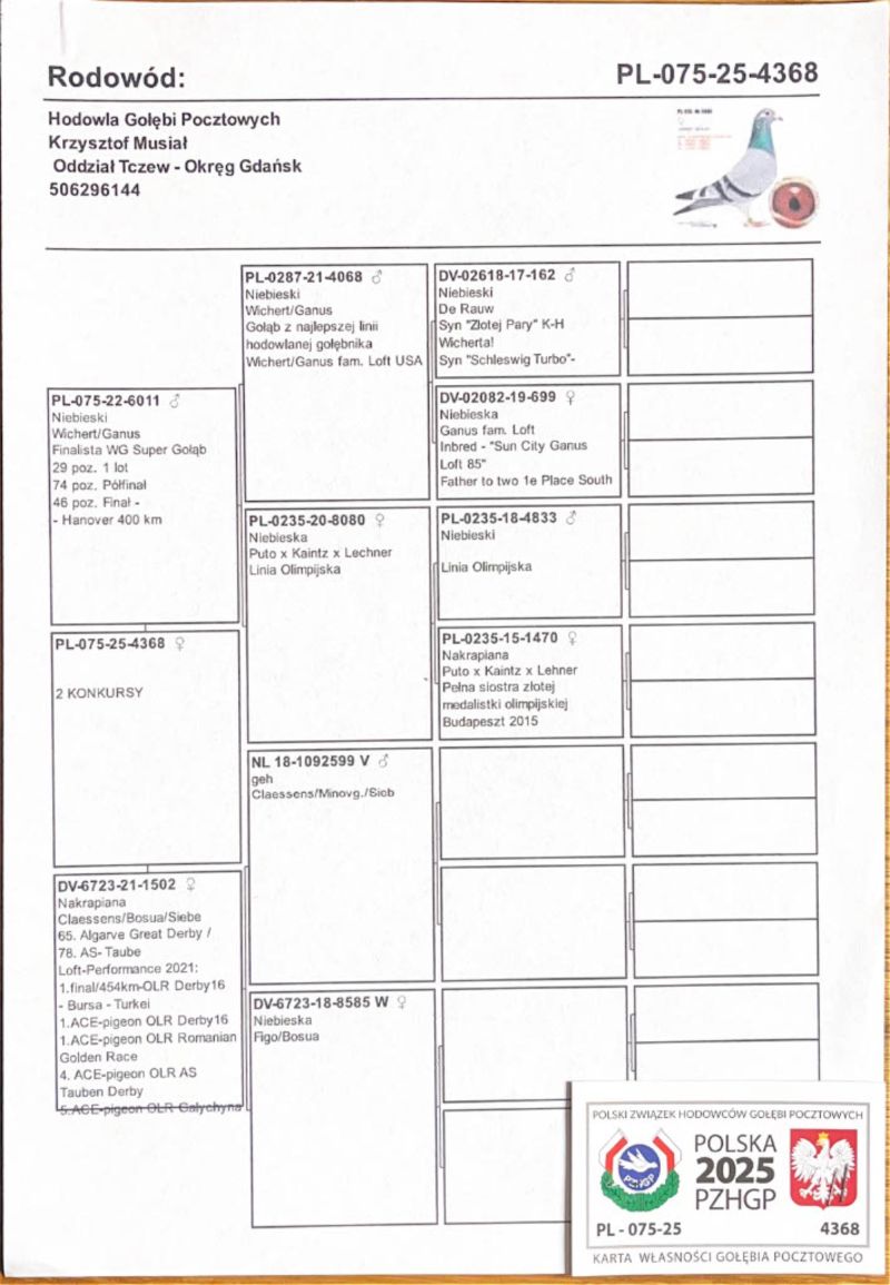 Młode po sezonie lotowym. Rodzeństwo brało udział w lotach na wspólnych gołębnikach. Więcej szczegółów w rodowodzie oraz pod numerem telefonu: 506 296 144